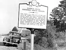 A historical marker once stood along State Route 60 near the location of the Candy's Creek Cherokee Mission Station