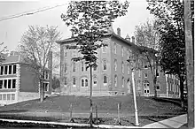 In 1900, a report on the "annual school meeting", held in the "union school building", reveals that the school would cost $7,947 (equivalent to $279,544 in 2022) to run for the coming year, of which $4,495.32 (equivalent to $158,127 in 2022) would be raised by tax. There were 54 voters at the meeting, which reduced the Board of Education from nine to five members.[12] After its abandonment in 1914 when the Greenwood Street Elementary School was built, it became Strait's Mill, then a feed store, before being torn down about 1952 and replaced by a bus garage. Adjacent to it to the south, between Fifth and Sixth Streets, is the Rotary Field, which remained the venue for school sports until the 1990s, when new facilities were built on Purdy Creek Road.