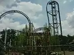 Canobie Lake Park features a variety of rides and attractions. The Yankee Cannonball, a 1930s-era wooden roller coaster, is one of the park's best-known rides. The park was home to a looping, steel roller coaster named the Canobie Corkscrew, designed by Arrow Dynamics. Originally manufactured in 1975, the Canobie Corkscrew operated at Old Chicago from 1975 to 1980 as the "Chicago Loop",[9] at the Alabama State Fairgrounds as "Corkscrew" from 1982 to 1986, before moving to Canobie Lake in 1987. The Canobie Corkscrew was one of the first steel looping roller coasters manufactured in the world and was part of a series of Arrow corkscrew models produced from 1975 to 1979. The Canobie Corkscrew was closed in 2021, and in 2022 the ride was removed from the park.[10] Parts of the ride were subsequently donated to the National Roller Coaster Museum and Archives upon its removal.