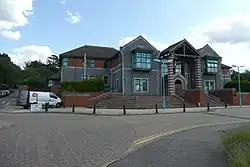 Historically, the quarter sessions in Canterbury had been held in the Guildhall,[1][2] and it was not 1971 that a dedicated magistrates' court complex was established in Broad Street for criminal trials.[3] However, as the number of court cases in Canterbury grew, it became necessary to commission additional courthouse facilities to accommodate the crown court and the county court. The site selected by the Lord Chancellor's Department, on the south side of Chaucer Road, had been occupied by a military hospital,[4] which had been re-purposed as military accommodation known as "Chaucer Barracks" by the time of the Second World War.[5][6] The proposed courthouse formed part of a broader plan by Canterbury City Council to regenerate the former military site by establishing public offices there.[7][8]