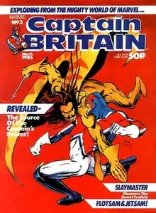 Davis would briefly take over writing the story himself until being joined by Jamie Delano, an up-and-coming writer recommended by Moore, and Meggan was incorporated as a major supporting character. Neary had also left Marvel UK, being replaced by Ian Rimmer.[10] In January 1985 the serial was transferred back to a new Captain Britain monthly series; due to a growing interest in the resurgent British industry issues of this series were exported to America, unlike the first series.[19] The series is notable for Betsy Braddock briefly taking over the role of Captain Britain - which would become a permanent change in 2019 - and for Captain Britain killing the villain Slaymaster by crushing his head with a large rock. Davis defended this, feeling it was justified due to the villain showing he would kill again - something he contrasted with Batman's unwillingness to kill The Joker.[20]