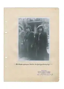 The original caption of the photograph was Mit Waffen gefangene Weiber der Haluzzenbewegung ("Hehalutz women captured with weapons").[14] Jürgen Stroop later described the bravery of the Jewish women who took up arms:[12][15]