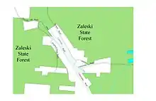 The name refers to the once-abundant coal resources in the hills and valleys surrounding the community.[2] The first coal mines in Carbondale opened in 1867, soon after the railroad was completed to that point.[3] The area was extensively mined, with all mines closing years ago. The community is closely hemmed in by the Zaleski State Forest, including the Enderlin Forest just west of town, which includes one of the earliest large-scale white pine plantations in the state, and features the state's champion white pine tree.