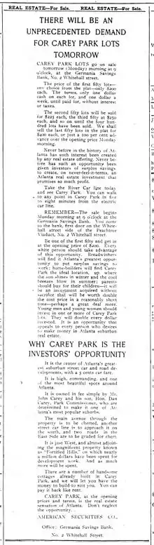 1913 Advertisement for lot sales in Carey Park