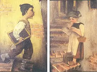 Carl finished his formal schooling at fourteen and needed to find an apprenticeship. Carl had been drawing and painting since he was a small child and wanted to work somewhere art-related.[1][5]