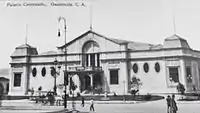 "Palacio del Centenario" -Centennial Palace-. Built in 1921 by Herrera administration to celebrate the first centennial of the Independence. It was located where the Royal Palace used to be, before it was destroyed by the 1917 Guatemala earthquake. The Centennial Palace was made of wood and therefore the Guatemalans called it the "Cardboard palace". It got destroyed in a fire a few years later.