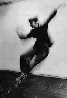 In 1964 she formed Trío 65, the first Chilean independent dance company, with dancers Gaby Concha and Rosa Celis.[3] Towards the end of the same decade, she migrated to the United States, actively participating in the New York art scene. A founding member of the collective The Natural History of the American Dancer,[4] Carmen Beuchat developed a link between her visual and choreographic work with a strong emphasis on spatial composition, incorporating the use of mobile structures in her choreography, presenting her work in spaces such as the 112 Greene St. Gallery, Whitney Museum, The Kitchen, Judson Church, Everson Museum of Art, and the Bronx Museum, among many others.[5][6]