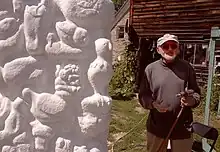 D'Avino standing next to his sculpture, "St. Francis", in Hammond, New York.