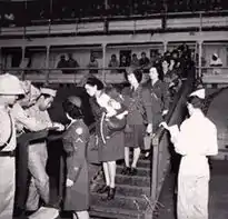 After being sworn in during the ceremonies held in San Juan, García Rosado and the other 199 women were sent to Fort Oglethorpe, Georgia for their basic training. The women were tested for their abilities and were given further training. Their duties varied, some were assigned as dental assistants, others as clerks and so on. García Rosado was assigned to the position of dental assistant. The women were assigned to Company 6, 2nd Battalion, 21st Regiment of the Women's Army Auxiliary Corps, a segregated Hispanic unit, and upon the completion of their training were sent to the port of embarkation of New York City.[3] According to García Rosado, one of the hardships which the women were subject to was the social and racial discrimination against the Latino community which at the time was rampant in the United States.[4]