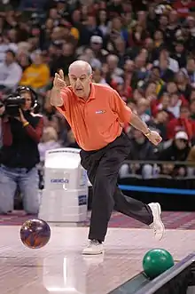 Carmen Salvino (born November 23, 1933, in Chicago) is an active professional ten-pin bowler, inventor, author, ambassador, and a founding member of the Professional Bowlers Association (PBA). Known as "PBA's Original Showman", Salvino won 17 PBA Tour titles –- among them the 1962 PBA National Championship where he defeated fellow bowling legend Don Carter in the finals. He also won two PBA Senior Tour titles, including the 1984 Senior National Championship. The right-handed bowler was among the eight original inductees to the PBA Hall of Fame in 1975, and is also a member of the USBC Hall of Fame (inducted 1979), the National Italian American Sports Hall of Fame (inducted 1985), the Illinois Sports Hall of Fame, and the Chicagoland Sports Hall of Fame.[1][2][3]