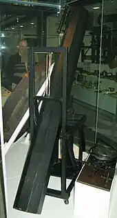 In the summer of 1783, William finished building a comet-searching telescope for Caroline, which she began to use immediately.[13] Beginning in October 1783, the Herschels used a 20-foot reflecting telescope to search for nebulae. Initially, William attempted to both observe and record objects, but this too was inefficient and he again turned to Caroline. She sat by a window inside, William shouted his observations, and Caroline recorded. This was not a simple clerical task, however, because she would have to use John Flamsteed's catalogue to identify the star William used as a reference point for the nebulae. In 1798 Caroline presented to the Royal Society an index to John Flamsteed’s observations, together with a catalog of 560 stars omitted from the British Catalogue and a list of the errata in that publication. Because Flamsteed's catalogue was organized by constellation, it was less useful to the Herschels, so Caroline created her own catalogue organized by north polar distance.[9][24] The following morning, Caroline would go over her notes and write up formal observations, which she called "minding the heavens."[23]