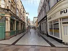 Caroline Street (Welsh: Stryd Caroline) is a pedestrianised street running east–west in the lower part of Cardiff city centre, located between The Hayes and St. Mary's Street. Due to the density of fast food shops along the street, it is colloquially referred to as Chip Alley, or Chippy Lane.