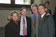 Maloney with President Bill Clinton, Tony Blair, and Jack Kingston in 1999