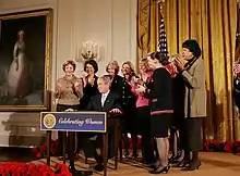 Maloney with President George W. Bush at the proclamation signing for Women's History Month in 2008