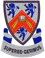 The book is the normal symbol used to indicate a school badge. The motto Superbe Gerimus was supplied by the Latin Department and means "We bear it proudly". The colours, blue and gold, were chosen because of their association with the Kennedy family. For distinguished service at Beugé in 1421, a member of the Kennedy family was given the right to use the blue and gold colours of the royal family of France.