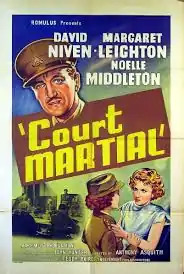 Carrington V.C., also known as Court Martial in the United States, is a 1954 British legal drama film directed by Anthony Asquith and starring David Niven, Margaret Leighton and Noelle Middleton. Others in the cast include Allan Cuthbertson, Victor Maddern, Raymond Francis, Michael Bates, Laurence Naismith, Geoffrey Keen and Maurice Denham. Made by Romulus Films it was distributed by the company's Independent Film Distributors and released in the United States by Kingsley-International Pictures. It was adapted for the screen by John Hunter from the play of the same name by Campbell and Dorothy Christie. It was produced by Teddy Baird.[2]