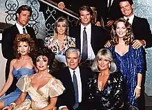 ![]() Clockwise from top left: John James, Heather Locklear, Jack Coleman, Gordon Thomson, Leann Hunley, Linda Evans, John Forsythe, Joan Collins, and Emma Samms. | |