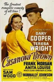Casanova Brown is a 1944 American comedy romantic film directed by Sam Wood, written by Nunnally Johnson, and starring Gary Cooper, Teresa Wright, and Frank Morgan. The film had its world premiere in western France after the Allies had liberated those territories following the D-Day Invasion.[1] The film is based on the 1927 novel An Unmarried Father by Floyd Dell and the 1928 play Little Accident by Dell and Thomas Mitchell, which had been previously filmed by Universal Pictures in 1930 as The Little Accident and in 1939 as Little Accident.