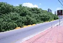 The Cashew Tree of Pirangi (Cajueiro de Pirangi), also called the world's largest cashew tree (maior cajueiro do mundo), is a cashew tree in Pirangi do Norte, Rio Grande do Norte, Brazil.[1] In 1994, the tree entered the Guinness Book of Records.[1] It covers an area between 7,300 square metres (1.8 acres)[2] and 8,400 square metres (2.1 acres).[3] Having the size of 70 normally sized cashew trees,[3][4] it has a circumference of 500 m (1,600 ft).[4] The vicinity of the World's Largest Cashew Tree in North Pirangi is also a main place for the sale of lace and embroidery in Rio Grande do Norte state.[5]