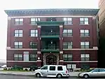 The Chesterfield Apartments is a Classical Revival, apartment building, constructed in 1911, and designed by Baxter and O'Dell. The four-story building sits on a raised basements, and measures 70 feet by 80 feet, The facade is symmetric, and contains a central three story, monumental portico with square brick piers and ornamental iron railings. The portico contains porches on the upper floors. The bays flanking the center contain groupings of paired windows on stone sills. Two stone stringcourses separate the first and second floors, and separate the fourth floor from the large cornice above.[2]