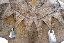 The vault that covers the room is formed by twelve high hanging arches, joined by a thin square frame with phytomorphic motifs. At the four corners, in the arches' rooms, are four decorative elements in the shell. It was probably built in the 16th century.