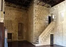 From the main entrance, with its arch, there is access to the trapezoidal courtyard, where the stairs for the upper floor are found. The staircase has some Bas-Relief, which represents animals and hunting scenes.[1]