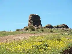 The site is dominated by vestiges of a rectangular building, encircled by three lines of fortifications in an advanced state of ruin.[3]