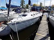 Original model introduced in 1993. This version has a draft of 6.46 ft (1.97 m) with the standard keel and 4.25 ft (1.30 m) with the optional shoal draft wing keel. This model is fitted with a Perkins Engines M30 (1993-1994), Westerbeke 29B (1995-1996), or Japanese Yanmar 3GM30F diesel engine of 27 hp (20 kW) (1997-).[4] The fin keel model has a PHRF racing average handicap of 159 with a high of 170 and low of 147. The wing keel model has a PHRF racing average handicap of 153 with a high of 165 and low of 141. It has a hull speed of 7.09 kn (13.13 km/h).[1][2][5]