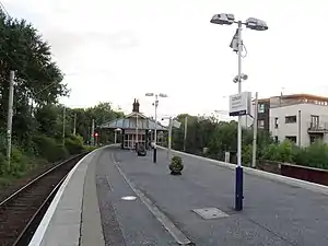 The station is staffed on a part-time basis (the ticket office is open Mondays to Saturdays, 06:35 to 13:40 only), with a ticket machine available for purchases outside these times. There is a waiting room in the main building, along with P.A system and digital information screens for train information provision. No step-free access is provided, as the platform is reached by a staircase from the street below.[4]