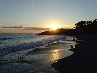 Cayucos State Beach is a protected beach in the state park system of California, United States. It is located in Cayucos, San Luis Obispo County. The sandy beach environment supports uses of swimming and surfing.[1] Prehistorically this general area of the central coast was inhabited by the Chumash people, who settled the coastal San Luis Obispo area approximately 10,000 to 11,000 BCE, including a large village to the south of Cayucos at Morro Creek.[2] The 16-acre (6.5 ha) park was established in 1940.[3]