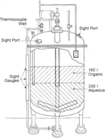 Left: Configuration of solutions (aqueous and organic) in the vessel before the accident. Right: Vessel in which the accident occurred