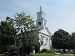There are two churches in the district. One, the Congregation Church at the southern end of the district, was built in 1797 and moved to its present location in 1826, an event that (along with an increase in maritime-related economic activity) stimulated development of this area in preference to Centerville's traditional center to the north. The other church building, originally built in 1876 for a Methodist congregation, has been substantially altered and is no longer historically significant. The triangular park at the junction of Park and Main includes two war memorials, one to the community's Civil War soldiers (placed in 1866), and a World War I memorial placed c. 1920.[2]