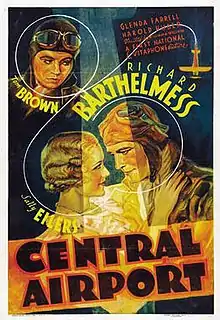 Central Airport is a 1933 American pre-Code aviation drama film directed by William A. Wellman (with Alfred E. Green, uncredited), based on the John C. "Jack" Moffitt story, "Hawk's Mate".[2] The film stars Richard Barthelmess and Sally Eilers. Central Airport was produced and released by Warner Bros., on April 15, 1933.[3] John Wayne had an uncredited part in the film, playing a co-pilot, and this film features his first on-screen death.