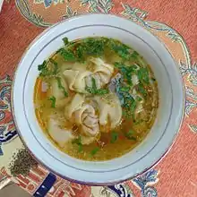 Tea is the most popular beverage. Green tea with cream is more common in Kyrgyz cuisine, while black tea is more common in Kazakhstan and Uzbekistan.[7] A chaikhana is a Central Asian teahouse where people gather to socialize over tea. Traditional dishes are served like shorpo (soup), shashlik (grilled meats), mastoba, manty, pilov and samsa. (Vodka is sometimes called ak cha or "white tea").[2]