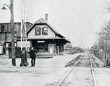 The Dorchester and Milton Branch Railroad opened across northern Milton on December 1, 1847, and became part of the Old Colony Railroad system the next year.[2] In 1876–77, a bridge over the Neponset River was built to connect Central Avenue in Milton with River Street in Dorchester. The Old Colony added a flag stop with a waiting shelter at Central Avenue in 1877.[3][4] It became a regular station on June 19, 1882, with a wooden station building added.[2][5][6]