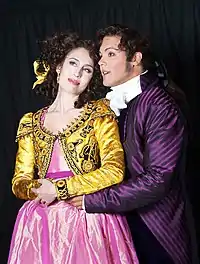 The Central City Opera company was also formed that year.[11] It is the fifth oldest opera company in the United States.[8] One of its popular performances is The Ballad of Baby Doe, which tells the story of wealthy mine-owner Horace Tabor and his second wife Baby Doe Tabor. It was first performed in 1956.[7] In 2001, it was the first opera company in the United States to produce Gloriana of Elizabeth I by Benjamin Britten. Gioachino Rossini's The Barber of Seville was performed by the Central City Opera in 2015.[12]