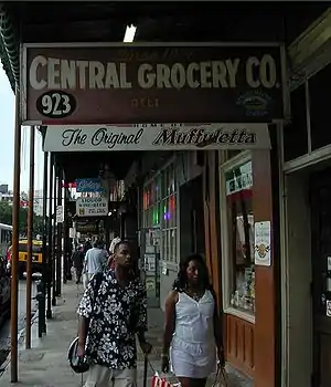 Central Grocery Co. is a small, old-fashioned Italian-American grocery store with a sandwich counter, located at 923 Decatur Street in the French Quarter of New Orleans, Louisiana. It was founded in 1906 by Salvatore Lupo, a Sicilian immigrant.[1] He operated it until 1946 when he retired and his son-in-law Frank Tusa took over the operation. It is currently owned by Salvador T. Tusa, Salvatore's grandson, and two cousins, Frank Tusa and Larry Tusa. The store was one of many family-owned, neighborhood grocery stores during the early 20th century, when the French Quarter was still predominantly a residential area. Though tourists are more common in Central now, it has retained much of its old-world market feel.