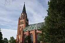 The church was built in between 1859 and 1863, when it was inaugurated. It is known for its unique church tower, which is made of cast iron. The tower is 72 metres (236 ft) tall. The church was designed by C. T. von Chiewitz and C.J. von Heideken. Glass paintings in the church are made by Magnus Enckell.