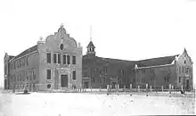 Iron River constructed the first Central School just south of the site of the present building in 1884.[2] The school was expanded in 1889, 1898, and 1902; the city built additional buildings, but the school system struggled to keep up with the booming population of Iron River. In 1902, a new school building was planned for the site, and the Milwaukee firm of Van Ryn & DeGelleke was engaged to design the building. However, construction did not begin until 1904, when Newman & Johnson were awarded a contract to construct the school.[2] However, the new building was sufficient for only a few years, and in 1910 the school district engaged John D. Chubb of Chicago to design two wings and a boiler room, which were constructed in 1910-11. "Annexes," likely separate temporary structures, were constructed in 1923, but removed some time later.[2]