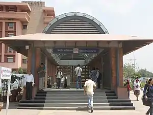 The Central Secretariat (often abbreviated Central Sectt on platforms and trains) is a Delhi Metro station in Delhi, on the Yellow Line. The Violet Line links it with Badarpur Border. The station provides a same-level interchange between the two lines.[1] It was the southern terminus of the Yellow line from 2005 to September 2010,[2] and the northern terminus of the Violet Line from 3 October 2010 to 26 June 2014.[3]