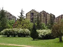 The borough is residential, with neighborhood type commercial content, and extensive parks and green spaces, with a population of 12,642 in 1991[10] and 13,091 in 2002.[11] Administratively a local community, sub-municipal administrative units since the 1980s, it merged with the neighboring Cerak and Sportski Centar local communities prior to the 2011 census. United Cerak local community had a population of 43,993.[12] As of June 2015 it has three large supermarkets, a medical center, "Ujedinjene Nacije" elementary school[5] and three large kindergartens.