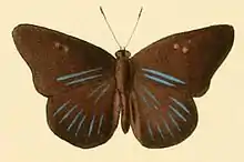 - ↑ Hewitson, W. C. (1873). "Description of Six New Species of Epitola from the West Coast of Africa". The Entomologist's Monthly Magazine. 10: 149–150.