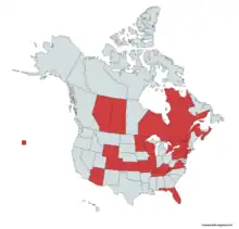 Ceriana abbreviata (Loew, 1864), the Northern Wasp Fly , is a rare species of syrphid fly observed across North America and Canada (see map). Hoverflies can remain nearly motionless in flight. The adults are also known as flower flies for they are commonly found on flowers, from which they get both energy-giving nectar and protein-rich pollen. The adults are wasp mimics. The larvae feed on the sap of tree wounds.[2][1][3][4]