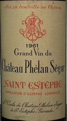 Detail of a Château Phélan Ségur 1961 label