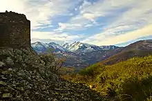 The castle, a 15-minute walk from the village, occupies a strategic position on a rocky spur overlooking the surrounding countryside. The extensive panorama takes in the mountain ranges of Canigou, the Albères, the Corbières Massif and the coast of Languedoc and Roussillon.[2]