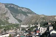 The location is strategic, making it "an important military junction position positioned at the crossing of roads leading to Italy, Tarentaise and Briançonnais".[7] The historian Christian Sorrel wrote that through the medieval period, "in the 14th century, people from the Piedmontese valleys, Tarentaise, l'Oisans and Briançonnais, coming by passes with an altitude of between 2,000 metres (6,600 ft) and 3,000 metres (9,800 ft) crowded the fairs of Saint-Michel-de-Maurienne".[8]
