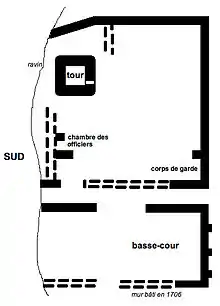 The castle was primarily military and defensive, the top of the keep serving as surveillance post able to communicate with other watch towers in the valley by fire signals. It was also a prison and, in the 17th century, became a customs post. After the French Revolution, it lost its military function.[4]