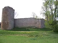 In an almost pentagonal plan, the remains of the castle consist of four towers with an entry pavilion. The western side of the enceinte comprises a residential building with a tower at each end. The southern face is in two parts, to the left there was a residential building now destroyed. Two towers have arrowslits and appear to be from the 13th century, as do their curtain walls and the lower parts of the western building. The latter was remodelled during the 16th century and has mullioned windows. It contains chimneys and a spiral staircase in the tower. The entry building must be from the beginning of the 17th century, and still has traces of the chains and the platform of the old drawbridge. The building on its left, also 17th century, has a watch tower. At the bottom of the southern curtain wall is a 13th-century postern. The house in the centre of the courtyard is 16th century, as is the well with armorial bearings located in the second courtyard. [1]