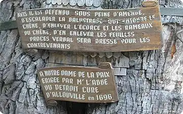 During the French Revolution, the tree became an emblem of the old system of governance and tyranny as well as the church that aided and abetted it: a crowd descended upon the village, intent on burning the tree to the ground. However, a local whose name is lost renamed the oak the "Temple of Reason" and as such it became a symbol of the new ways of thinking and was spared.