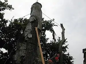 The oak tree is between 800[1] and 1,200[2] years old. It is 15 metres (49 ft) high and its base has a circumference of 16 metres (52 ft). Its hollow trunk is used as the walls [3] of the two chapels, which were built there in 1696 and are still used: Notre-Dame-de-la-Paix ("Our Lady of Peace") and the Chambre de l'Ermite ("Hermit's room").[2][4] A spiral staircase around the trunk provides access to the chapels.[1]